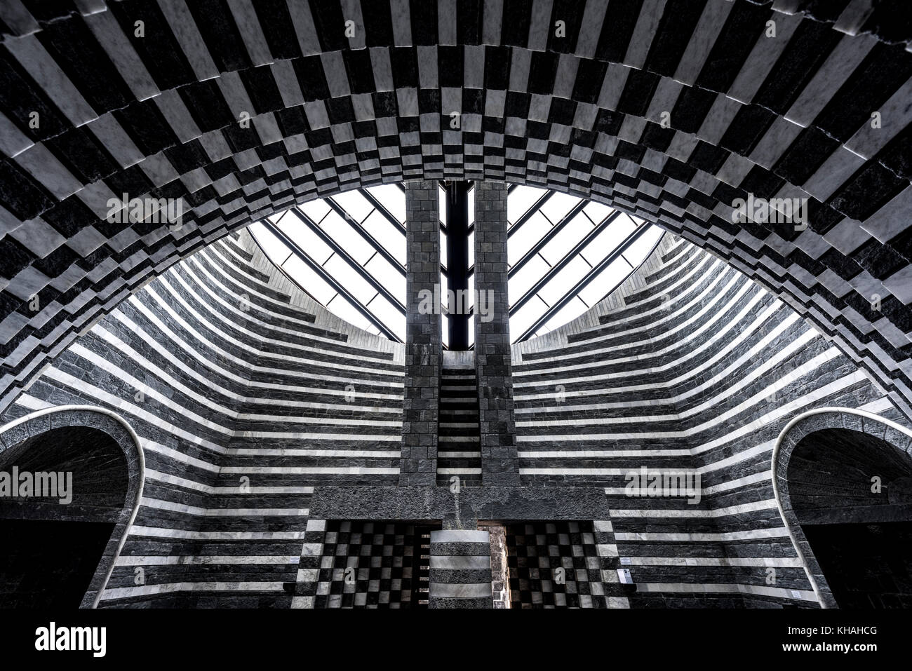 Mario botta san giovanni battista, mogno. Church of san giovanni battista by mario botta, mogno, switzerland. Photo about beams, famous, design, building, john, architect, giovanni, june, alpine, checker. Mario botta from lugano was commissioned to rebuild the new church in honour of st. The church is instead illuminated via a glass roof. The contemporary building stands out among the traditional houses of the village. A landmark clad in alternating bands of grey riveo granite and white peccia marble, both of which are native to the region, cast the theatrical drama of this reformed place of worship by swiss architect mario botta. Une fois à l'intérieur, on est pris dans le tourbillon d'un damier. Built between 1992 and 1996, it was designed by mario botta and rises on the remains of the original 15th century church destroyed by an avalanche. The interior has a dizzying checkerboard design in the same colors. Villages at the foot of the swiss alps have been familiar. It was built between 1994 and 1996 on the site of an older church (from 1626), which was levelled by an avalanche in 1986. Filmed and edited 4k with a panasonic gh4